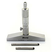 Глубиномеры микрометрические типа ГМ предназначены для измерения глубины пазов, отверстий и высоты уступов. Диапазон измерения обеспечивает набор сменных удлинительных стержней, оснащенных твердым сплавом. Отсчет осуществляется по шкалам стебля и барабана микрометрической головки. Для обеспечения постоянства измерительного усилия микрометрическая головка снабжена трещоткой. Погрешность микрометрической головки ± 0,003 мм. Глубиномер не требует повторной установки на ноль после смены удлинительных стержней.